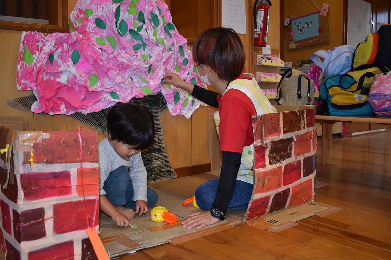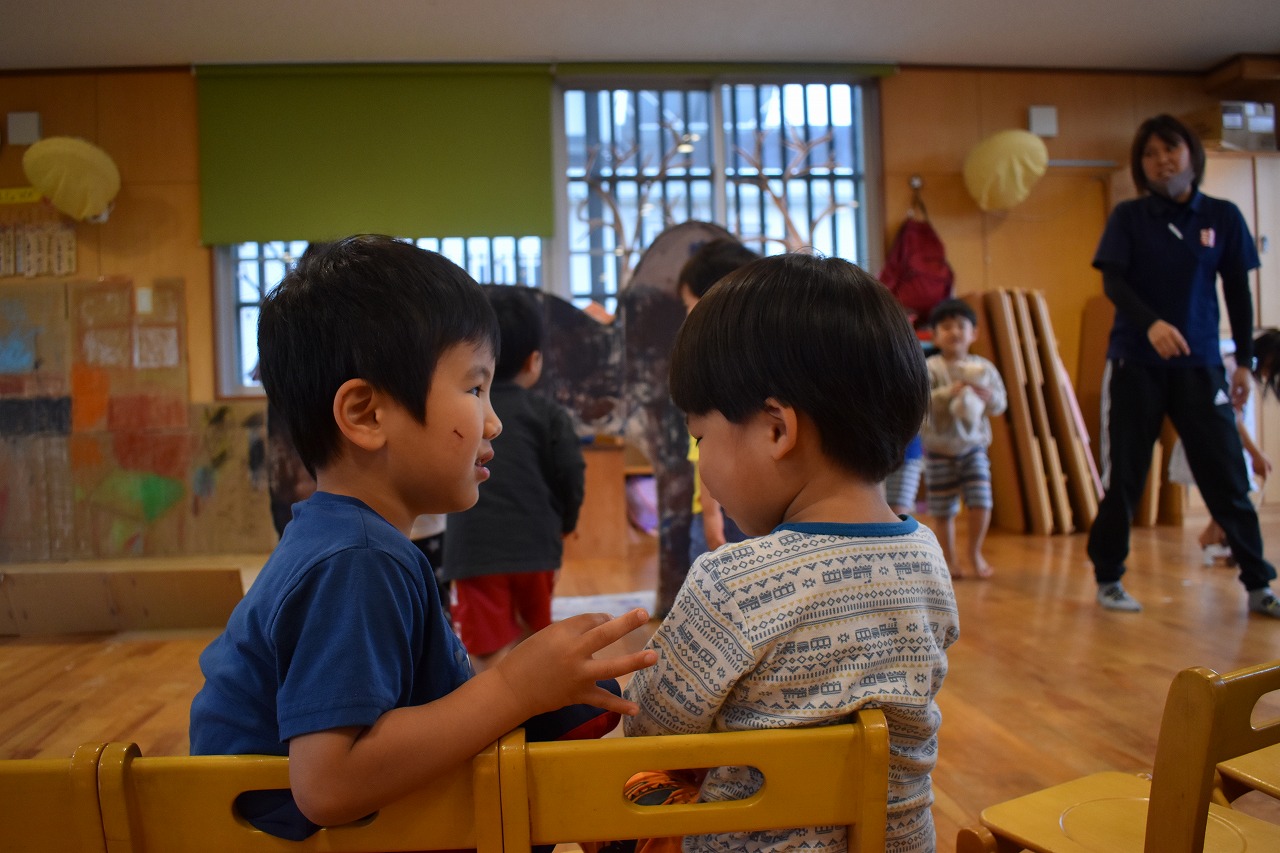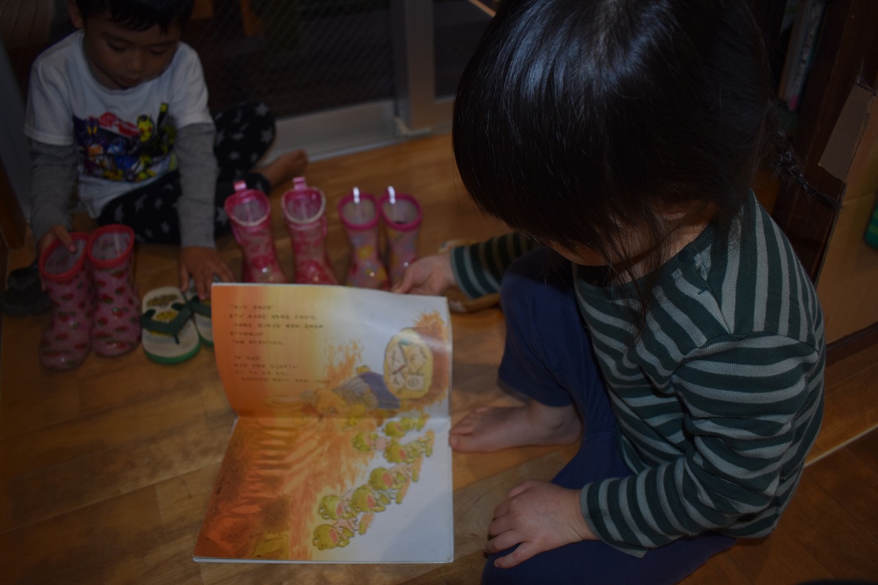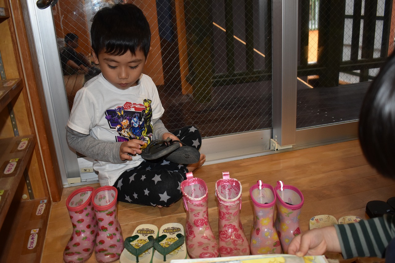 2021.03.02 それぞれの世界 オペレッタ審査員 のり ぬるから せんせー はってね これはー ぞうり これはー ながぐつ っていうんだけど わかる? くろいのも ぞうり なんだよ 履物説明ブース 履物説明ブースの横